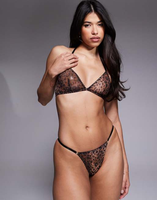 ASOS DESIGN - Nellie - Soutien-gorge triangle fermé devant en tulle à imprimé léopard - Marron