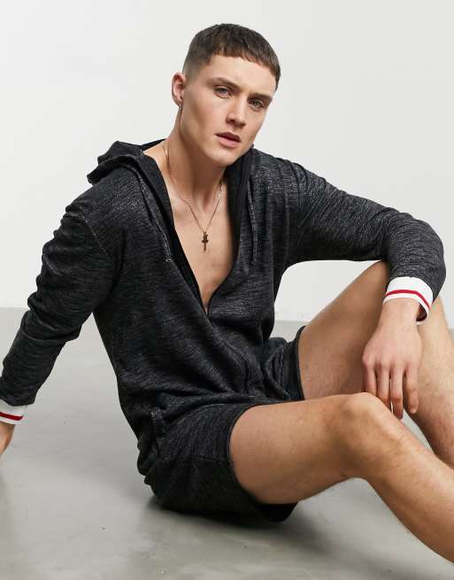 ASOS DESIGN - Onesie court à côtes rayées - Noir
