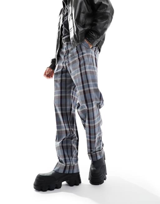 ASOS DESIGN - Pantalon à carreaux ample et élégant à ourlet retroussé - Vert