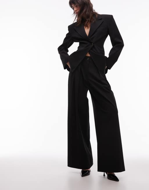 ASOS DESIGN - Pantalon à pinces ajusté avec taille haute - Noir