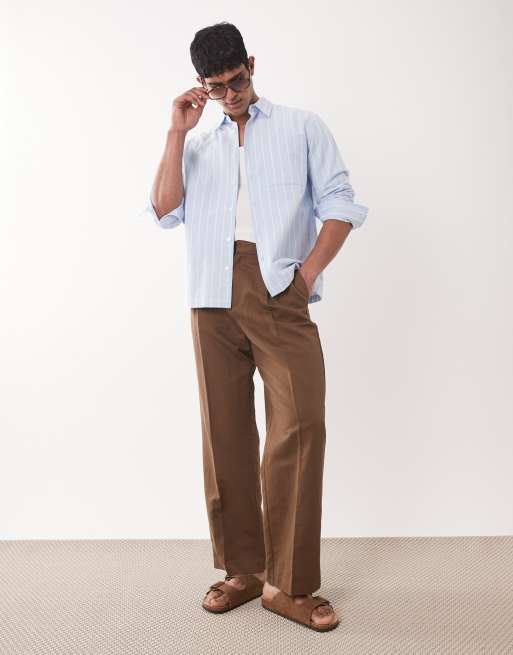 ASOS DESIGN - Pantalon à pinces ample et élégant en lin mélangé - Marron foncé