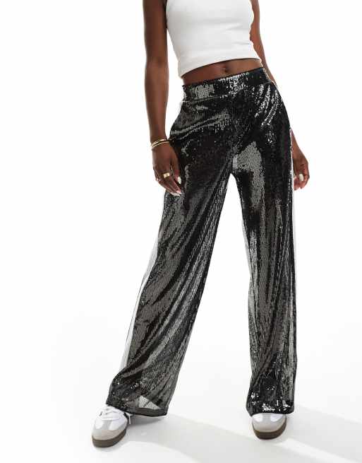 ASOS DESIGN - Pantalon à sequins avec empiècements contrastants - Gris