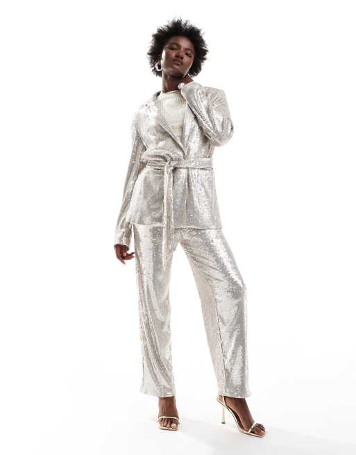 ASOS DESIGN - Pantalon ajusté longueur cheville à sequins - Crème