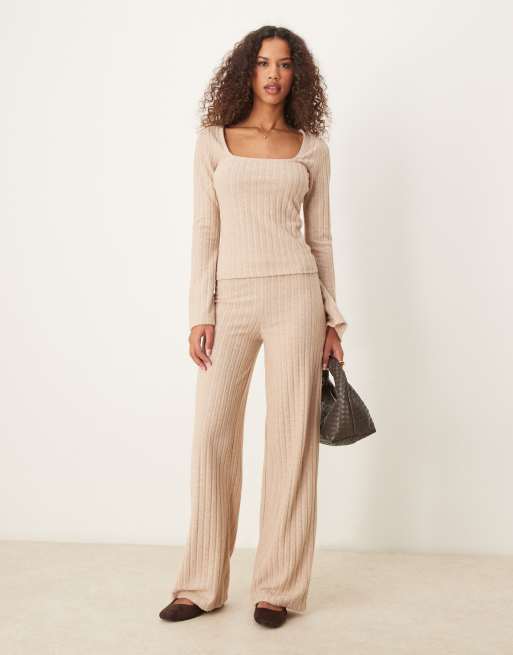 ASOS DESIGN - Pantalon ample d’ensemble effet brossé à larges côtes - Avoine