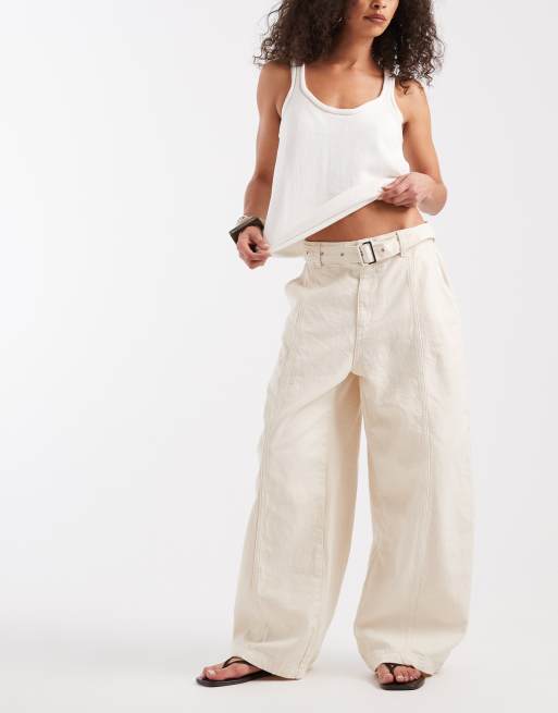 ASOS DESIGN - Pantalon ample en toile avec ceinture - Taupe