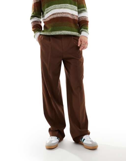 ASOS DESIGN - Pantalon ample habillé à pinces - Marron
