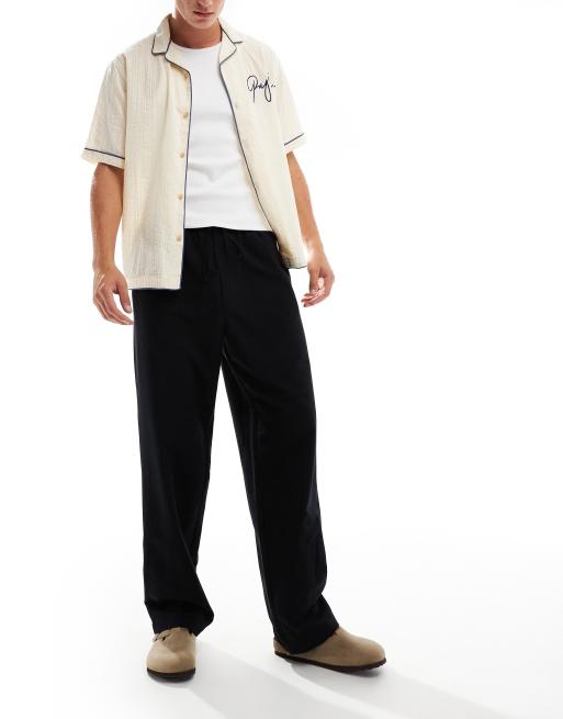 ASOS DESIGN - Pantalon baggy en lin mélangé - Noir