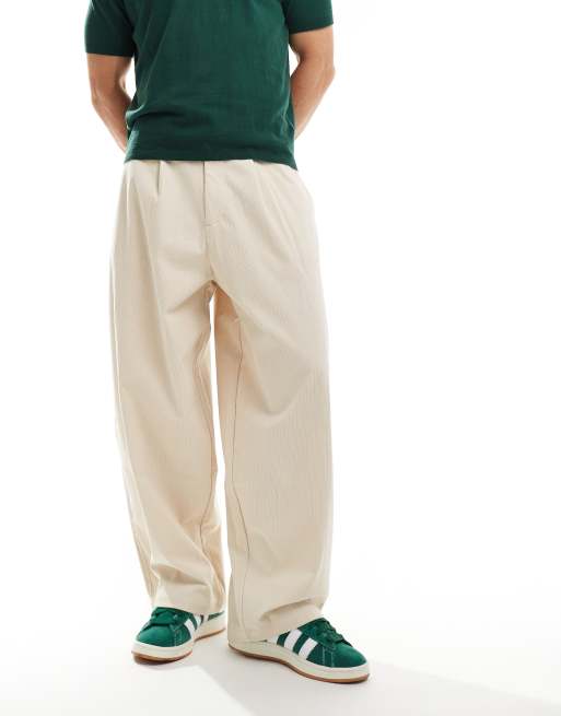 ASOS DESIGN - Pantalon baggy oversize en velours côtelé avec pinces - Crème