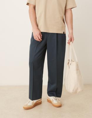 ASOS DESIGN - Pantalon bouffant élégant avec pli marqué à l'avant - Bleu foncé