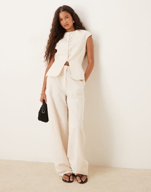 ASOS DESIGN - Pantalon bouffant élégant en lin mélangé - Ivoire