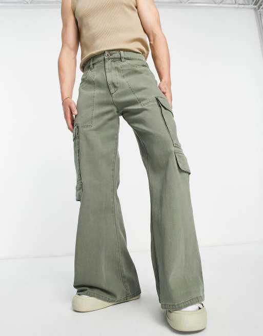 ASOS DESIGN - Pantalon cargo ultra-évasé - Kaki délavé