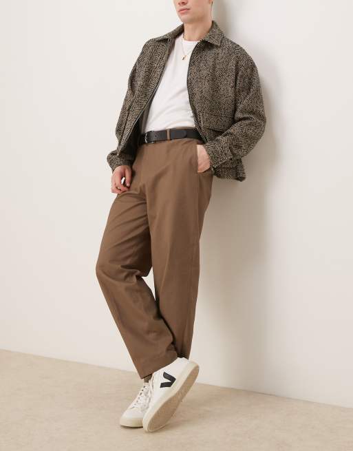 ASOS DESIGN - Pantalon chino coupe oversize ample fuselée à pinces à l'avant - Kaki