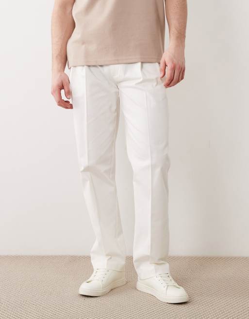 ASOS DESIGN - Pantalon chino droit ajusté en coton majoritaire avec plis sur le devant - Blanc