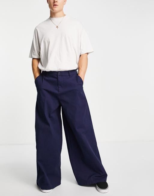 ASOS DESIGN - Pantalon chino large - Bleu marine