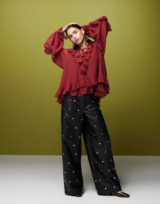 ASOS DESIGN - Pantalon clouté en similicuir - Noir