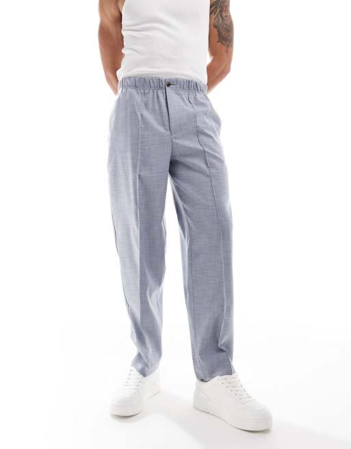 ASOS DESIGN - Pantalon de costume à enfiler coupe oversize fuselée à motif hachuré - Bleu