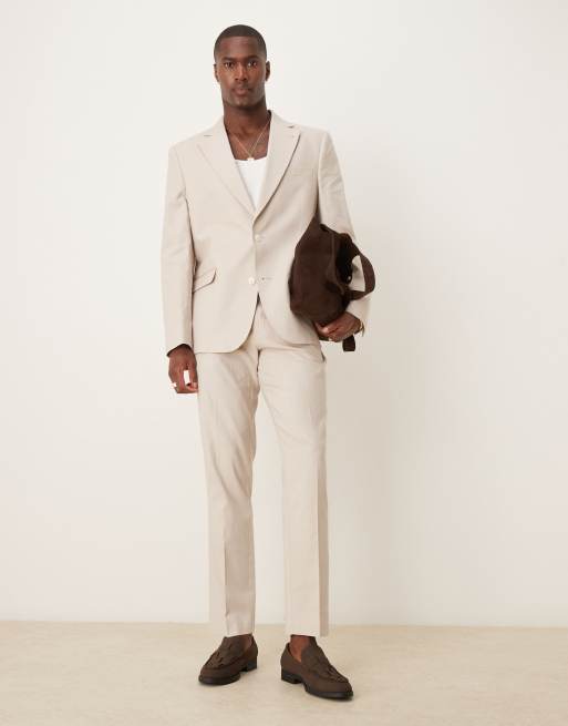 ASOS DESIGN - Pantalon de costume ajusté en lin mélangé - Taupe