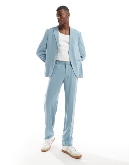ASOS DESIGN - Pantalon de costume droit d'été en tissu flammé - Bleu clair