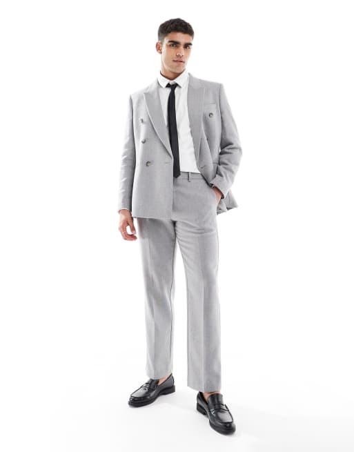 ASOS DESIGN - Pantalon de costume droit en laine mélangée nattée - Gris