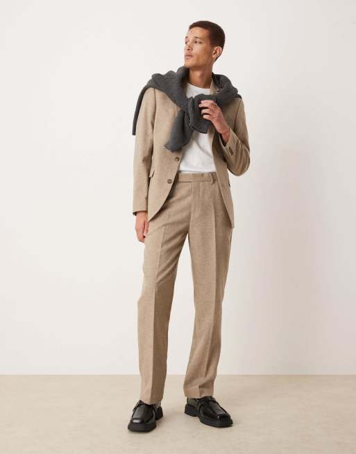 ASOS DESIGN - Pantalon de costume droit en laine mélangée - Taupe
