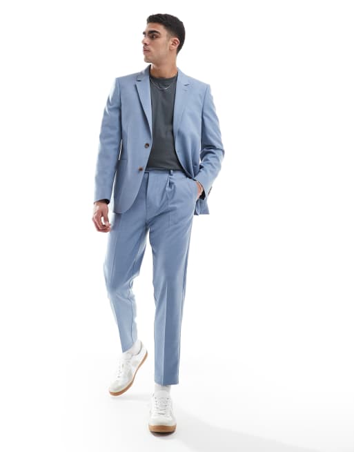 ASOS DESIGN - Pantalon de costume fuselé en coton mélangé - Bleu clair