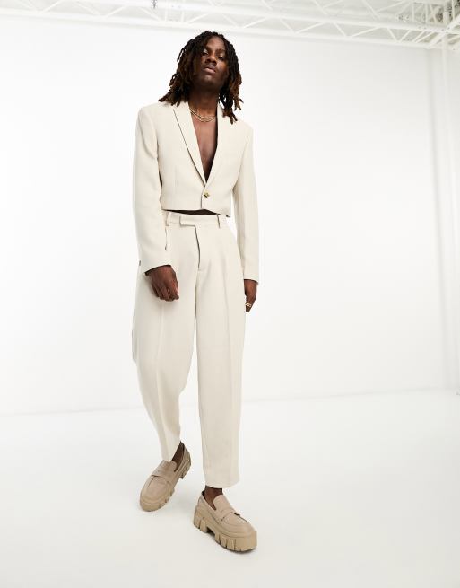 ASOS DESIGN - Pantalon de costume fuselé oversize en jersey texturé - Beige