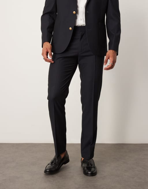 ASOS DESIGN - Pantalon de costume slim en jacquard - Bleu marine