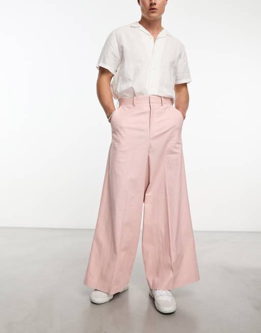 ASOS DESIGN - Pantalon de costume ultra ample en lin mélangé - Rose