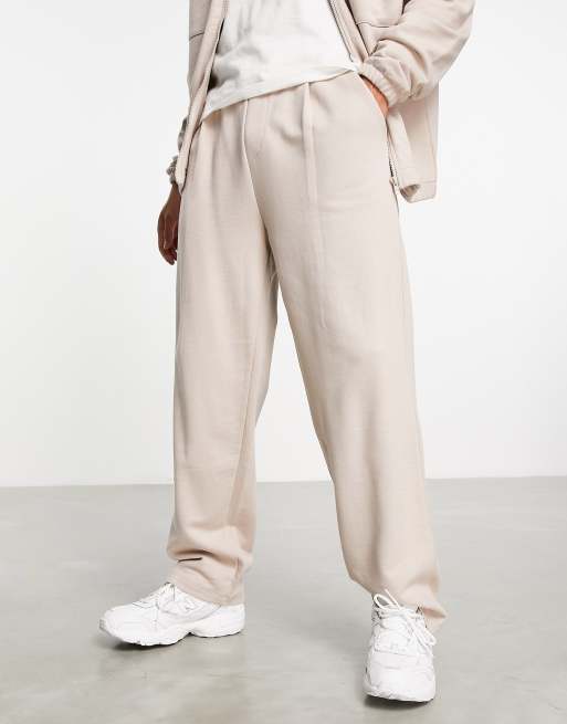 ASOS DESIGN - Pantalon de jogging d'ensemble ample avec pli à l'avant - Beige