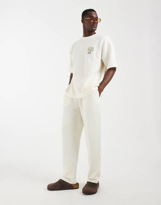 ASOS DESIGN - Pantalon de jogging d'ensemble coupe ballon slim aspect lin - Écru