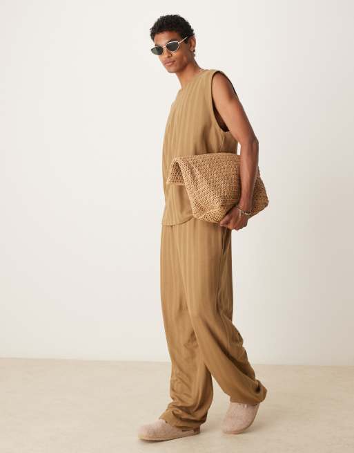 ASOS DESIGN - Pantalon de jogging d'ensemble rayé en jacquard - Marron
