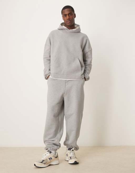 ASOS DESIGN - Pantalon de jogging oversize d'ensemble en tissu épais 650 g/m² de qualité supérieure - Gris chiné