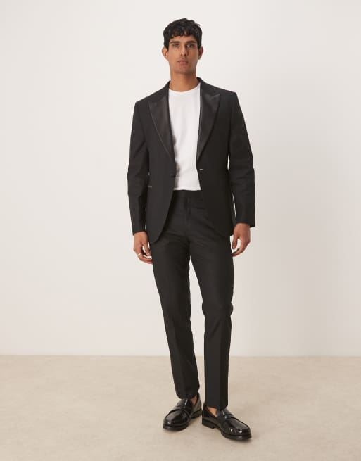 ASOS DESIGN - Pantalon de smoking slim en lin mélangé - Noir