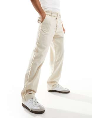 ASOS DESIGN - Pantalon décontracté d'ensemble en lin à coutures effilochées - Taupe