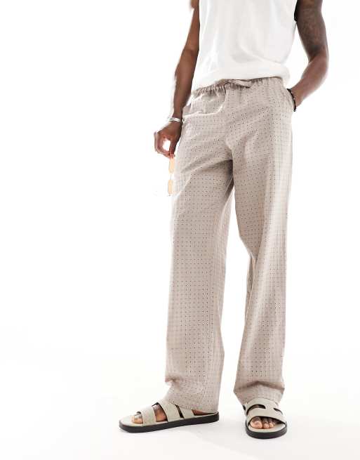 ASOS DESIGN - Pantalon décontracté en broderie anglaise à taille élastique - Marron