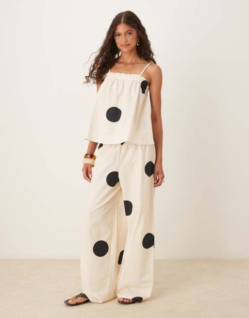 ASOS DESIGN - Pantalon d'ensemble à enfiler en lin mélangé - Crème à pois