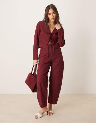 ASOS DESIGN - Pantalon d'ensemble ajusté arqué et brodé - Cerise foncé