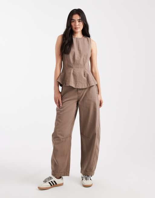 ASOS DESIGN - Pantalon d'ensemble ample à coutures contrastantes - Gris taupe délavé