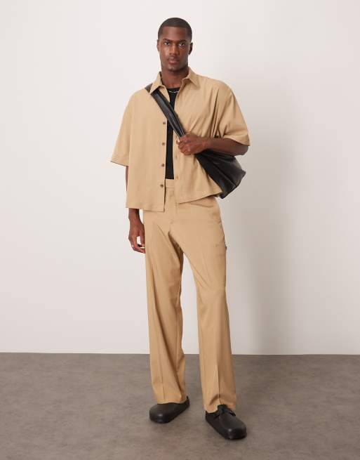ASOS DESIGN - Pantalon d'ensemble cargo large et élégant effet peau de pêche - Camel