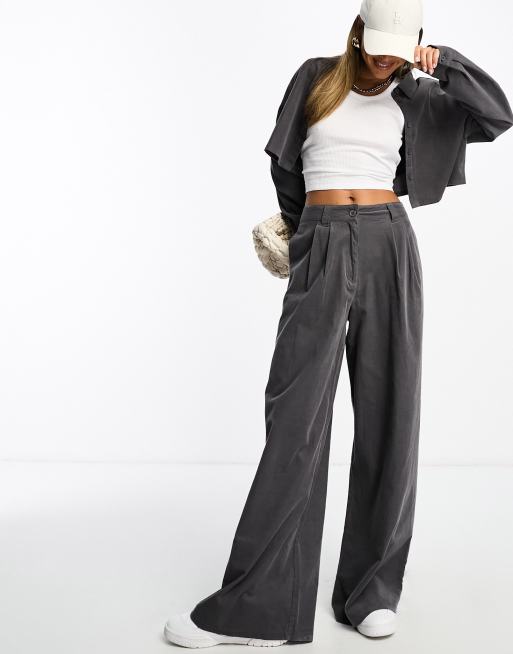 ASOS DESIGN - Pantalon d'ensemble coupe dad en velours côtelé - Gris