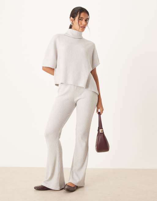 ASOS DESIGN - Pantalon d'ensemble évasé en tissu côtelé brossé - Gris