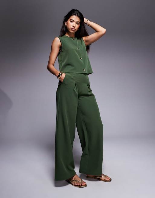 ASOS DESIGN - Pantalon d'ensemble large à pinces - Kaki