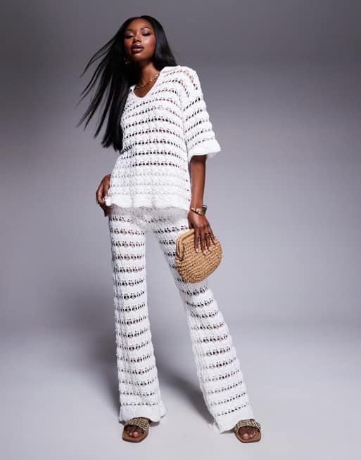 ASOS DESIGN - Pantalon d'ensemble large en maille délicate - Blanc