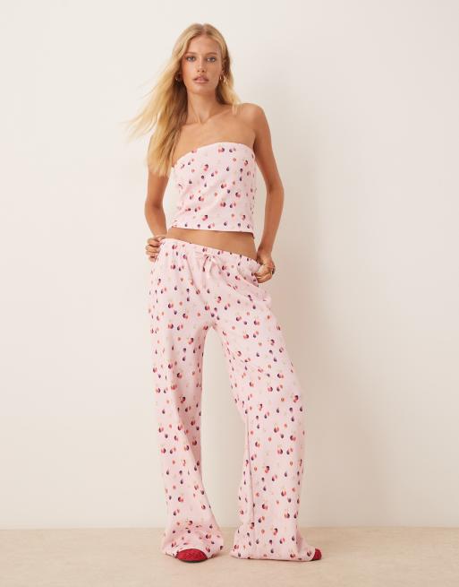 ASOS DESIGN - Pantalon d'ensemble large et gaufré à petites fleurs - Rose
