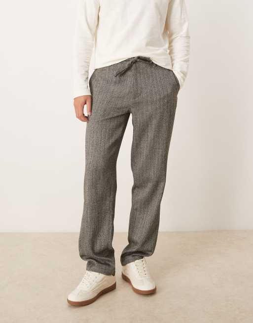 ASOS DESIGN - Pantalon droit à chevrons avec liens à la taille - Gris