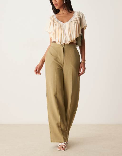 ASOS DESIGN - Pantalon droit décontracté en lin mélangé - Kaki
