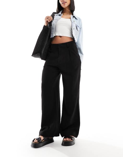 ASOS DESIGN - Pantalon droit décontracté en lin mélangé - Noir