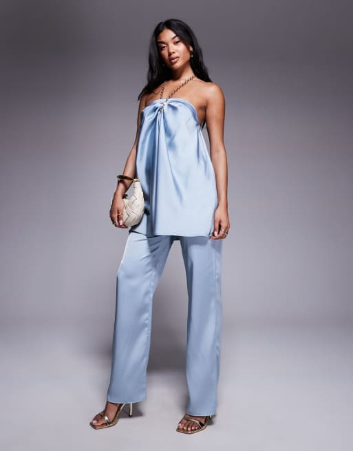 ASOS DESIGN - Pantalon droit d'ensemble habillé en satin - Bleu