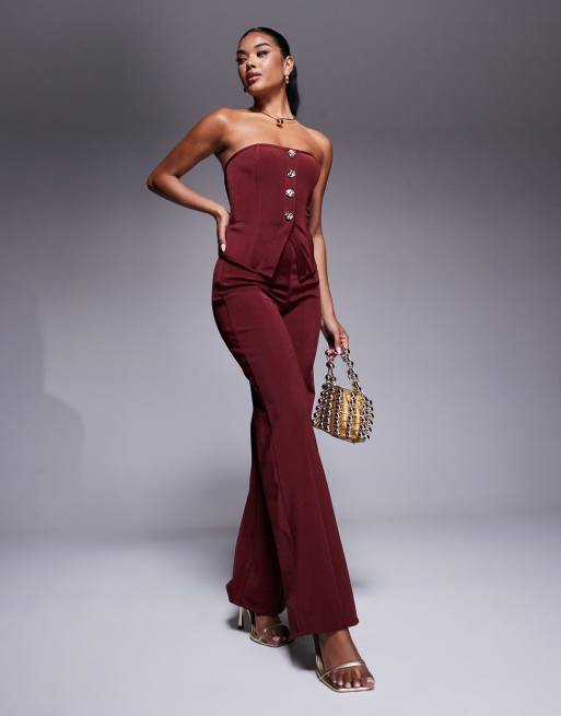 ASOS DESIGN - Pantalon droit d'ensemble près du corps - Bordeaux