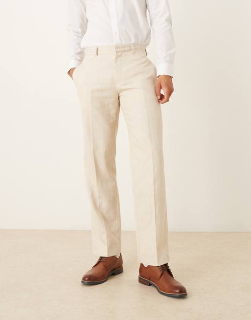 ASOS DESIGN - Pantalon droit élégant en lin majoritaire - Beige